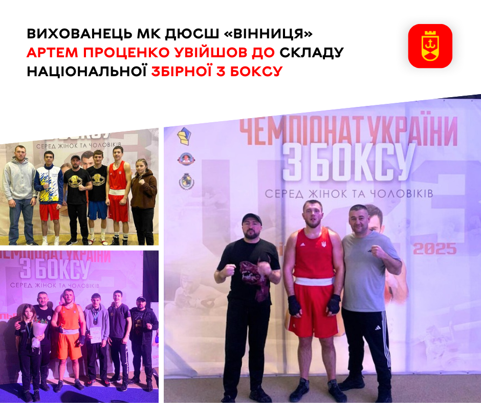 Як зазначається на сайті Вінницької міської ради, у Львові завершився чемпіонат України U23 з боксу. У змаганнях взяли участь 186 найсильніших боксерів з усієї країни, щоб поборотися за місце в збірній України. Міську комплексну дитячо-юнацьку спортивну школу «Вінниця» представляв Артем Проценко у ваговій категорії 92 кг+. Він провів три поєдинки, здобув дві вольові та надважливі перемоги і лише в фіналі поступився більш габаритному супернику.