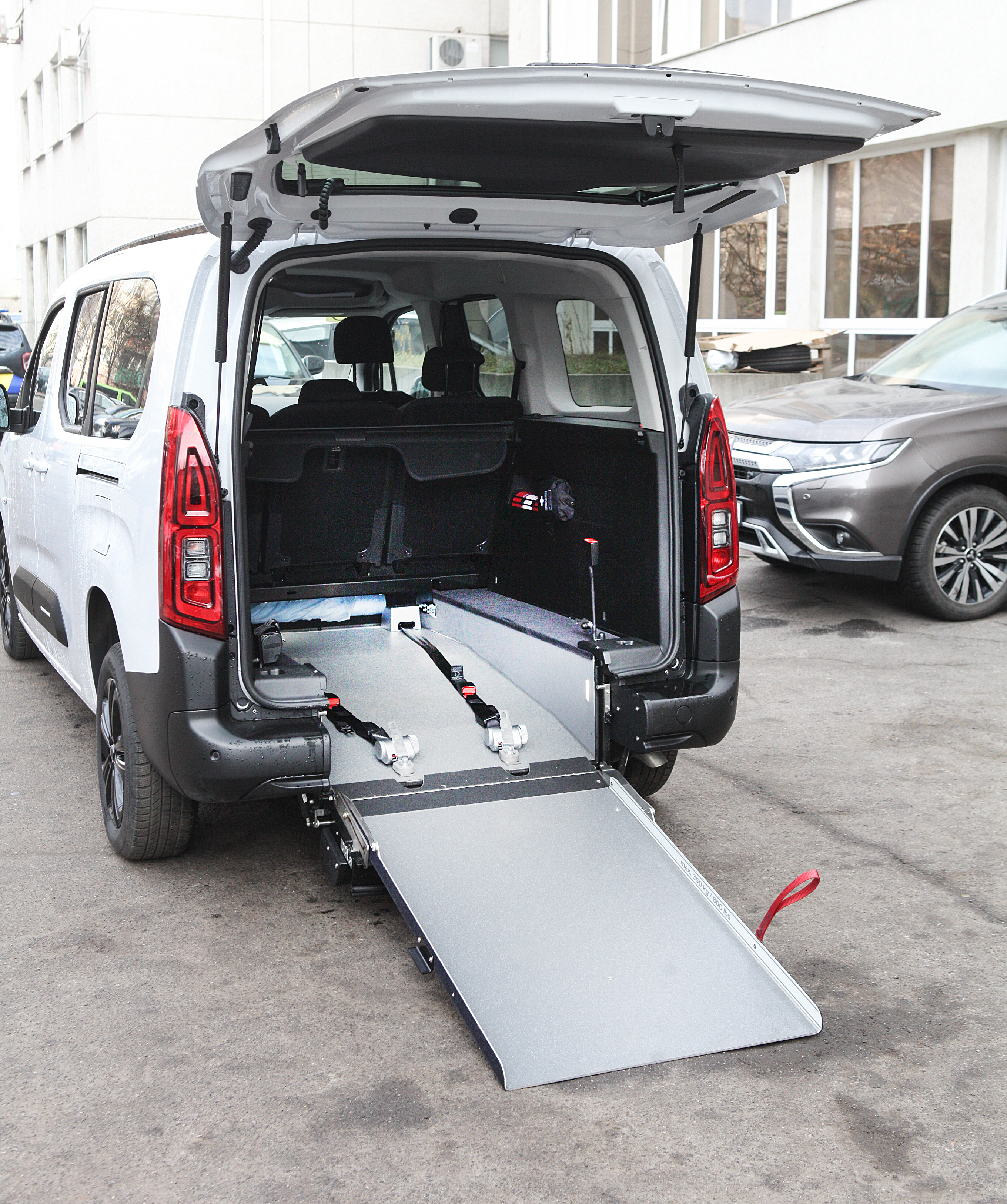 Транспорт розрахований на чотири пасажирських місця. Автомобіль обладнаний для перевезення осіб з інвалідністю, оснащений підіймачем та місцем для крісла колісного.