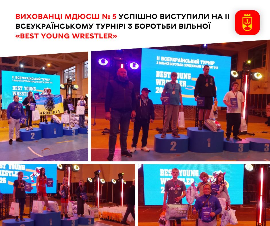 Як повідомляють на сайті Вінницької міської ради, 15 та 16 жовтня у місті Хмельницький відбувся ІІ Всеукраїнський турнір з боротьби вільної серед юнаків та дівчат «BEST YOUNG WRESTLER», який об’єднав понад 200 юних спортсменів та спортсменок із різних областей країни. Вінницю представляли 12 вихованців міської дитячо-юнацької спортивної школи № 5. За підсумками змагань наші спортсмени здобули три золоті, одну срібну та три бронзові медалі, а також посіли одне п’яте місце.