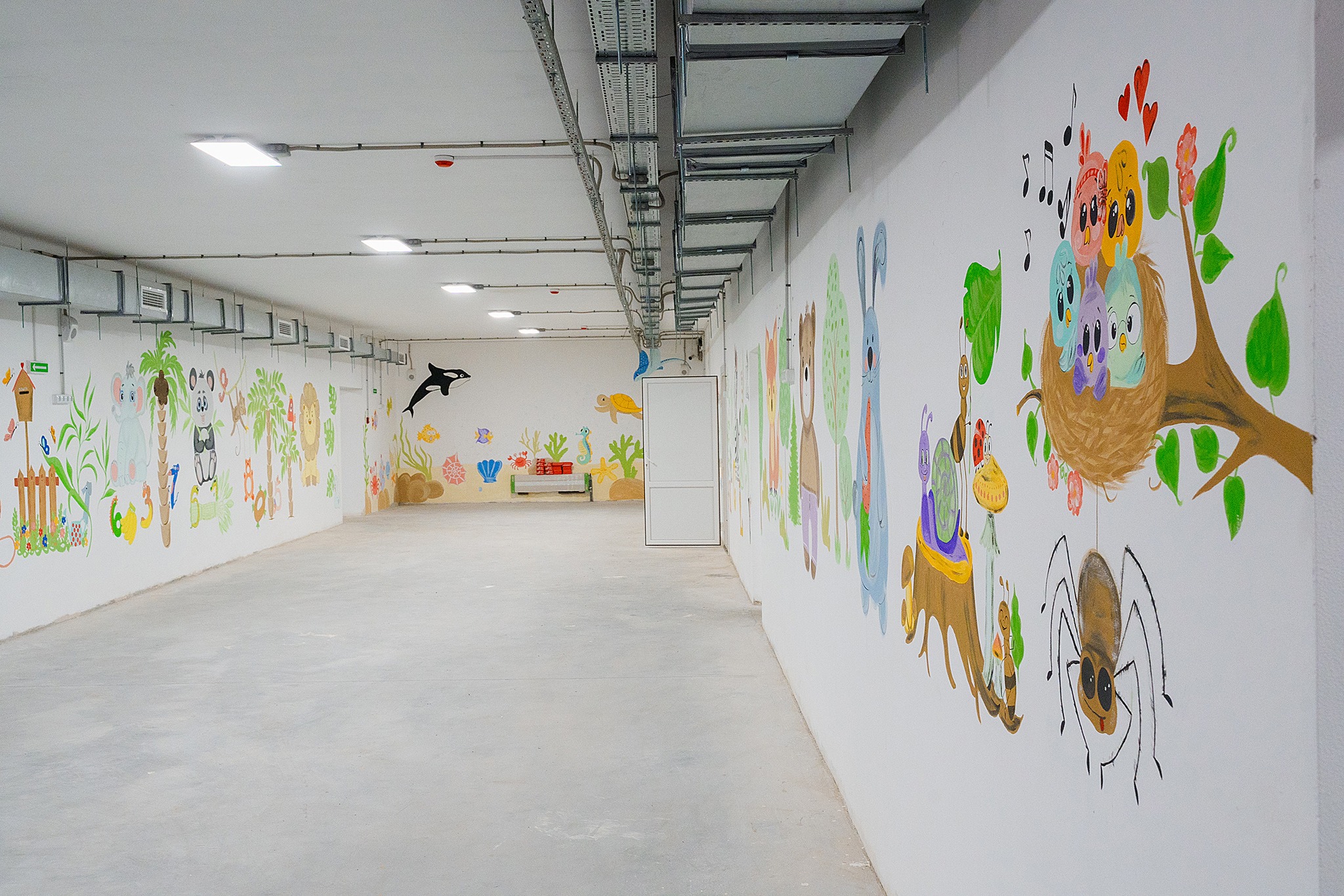 В укритті передбачена вся необхідна інфраструктура для комфортного перебування під час повітряної тривоги: місця для відпочинку, санвузли, їдальня, медичний кабінет, облаштовані також вентиляція та теплопункт.