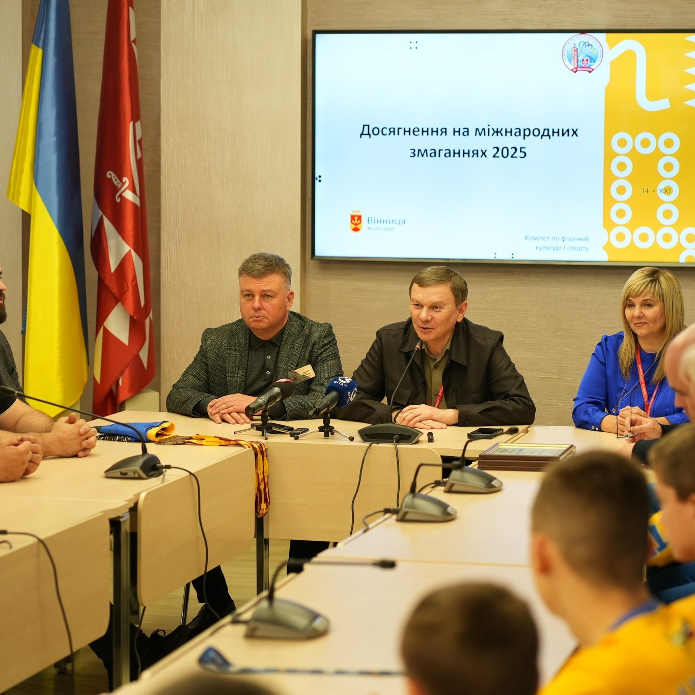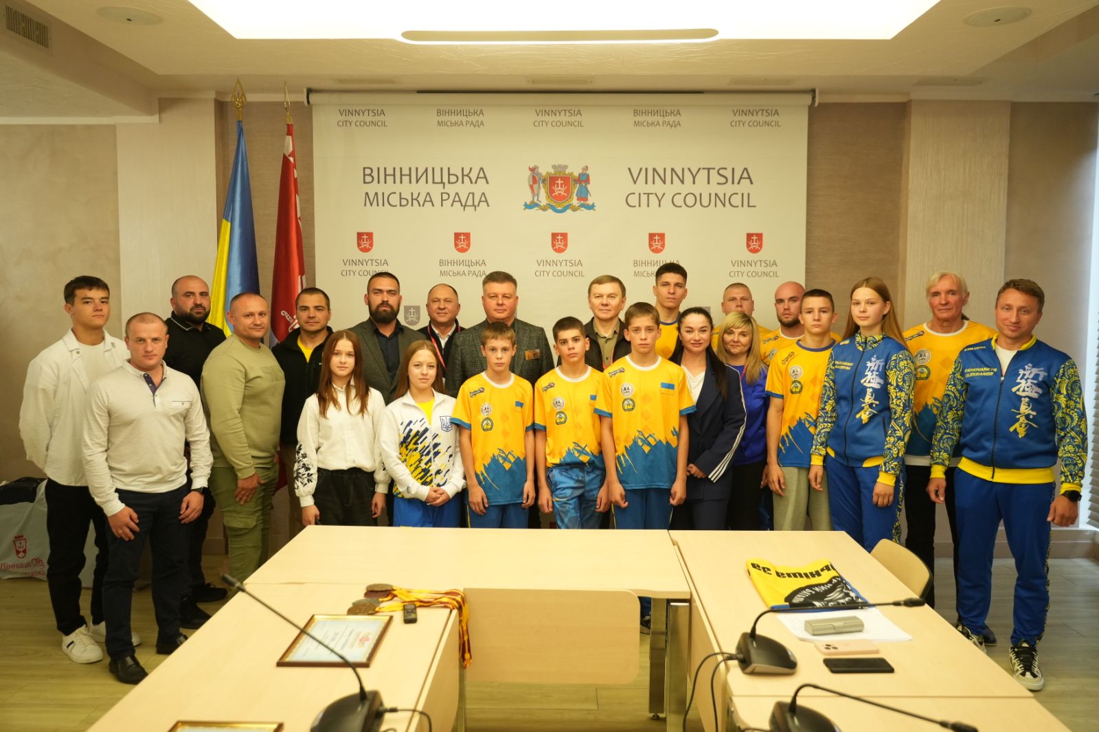 Як зазначається на сайті Вінницької міської ради, сьогодні відбулося урочисте нагородження спортсменів та їхніх тренерів, які гідно представили Україну на міжнародній арені – від ветеранів, які виборюють медалі на європейських змаганнях, до юних чемпіонів, котрі вже під час дебютних виступів здобувають «золото». Наші земляки підкорюють подіуми світу у різних видах спорту – від бодібілдингу, де вінничанка стала абсолютною чемпіонкою світу, до сумо, кіокушинкай карате, універсального бою та тайського боксу муай тай, пауерліфтингу. Усі ці перемоги – результат щоденної праці, сили духу та підтримки тренерів, які стоять за кожним успіхом спортсменів та спортсменок.