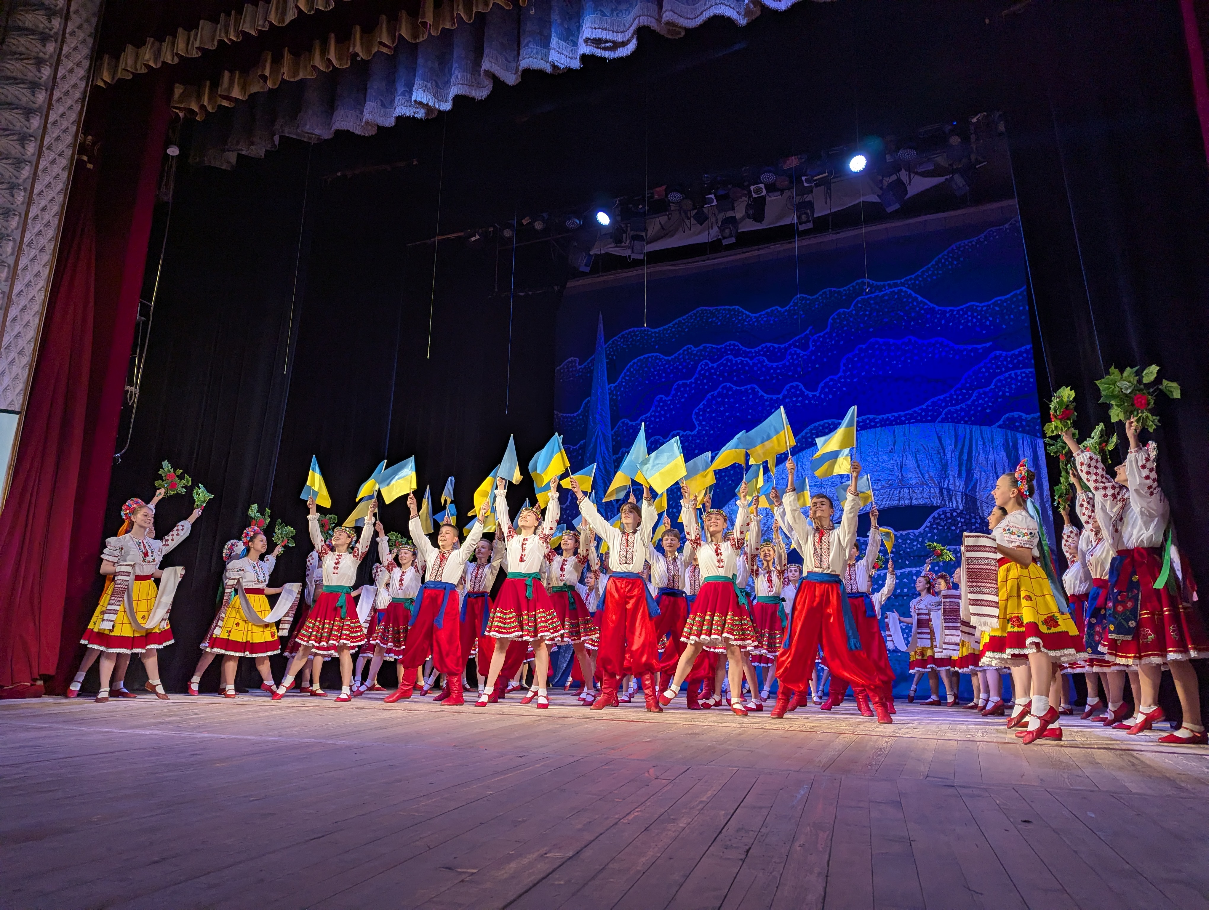 На головній сцені міста українські народні танцювальні композиції презентували юнаки та дівчата ансамблю «Радість». Не шкодували глядачі оплесків і між виступами, коли відзначали кращих викладачів за їхню невтомну працю, любов до професії та батьківську турботу про вихованців Палацу.