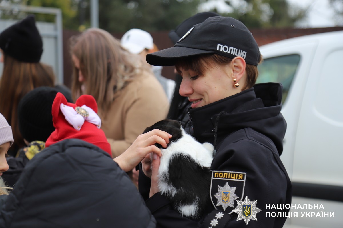 Малеча разом із поліцейськими привезли корм і смаколики для тваринок й отримали море емоцій і вдячних поглядів від «чотирилапих».