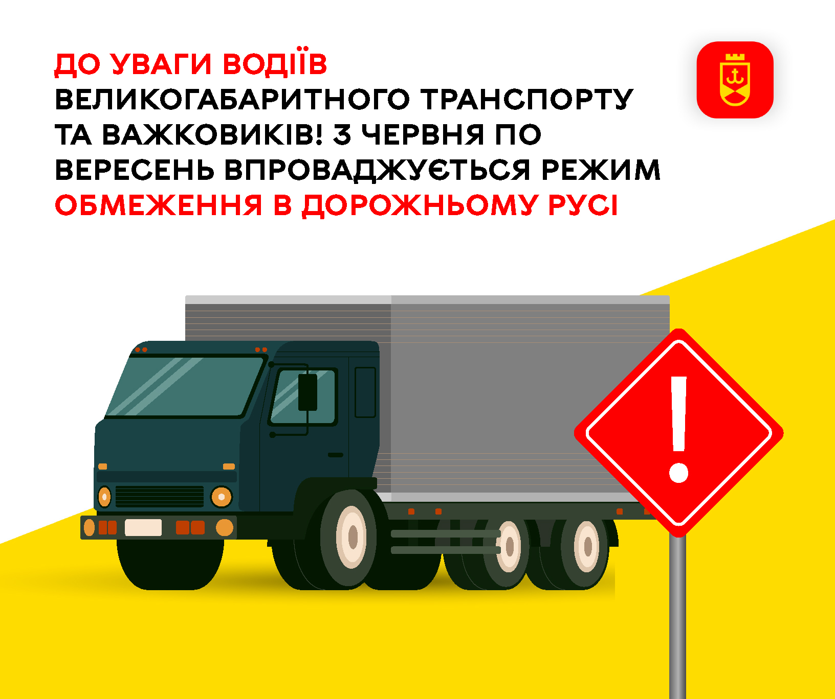 Обмеження діятимуть 9.00 до 22.00 год. Це не стосується перевезення небезпечних, швидкопсувних вантажів, живих тварин і птиці, а також тих, які пов’язані із запобіганням або ліквідацією наслідків надзвичайних ситуацій.