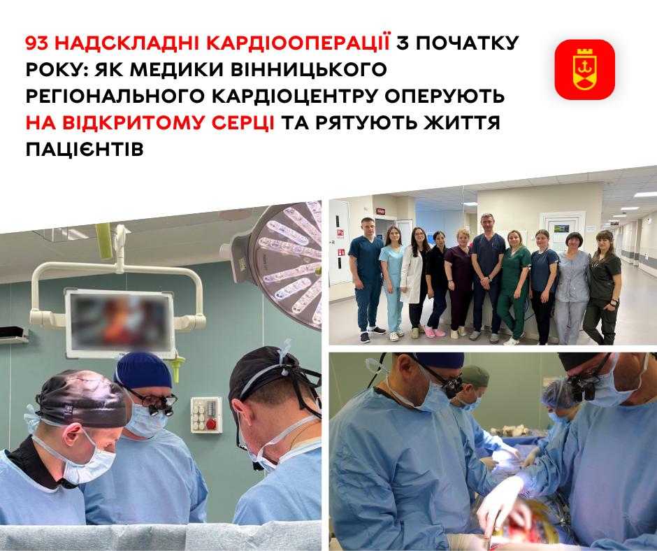 Вінницький регіональний центр серцево-судинної патології працює у ритмі серця – стабільно і злагоджено. У закладі працюють професійні кардіохірурги, які проводять надскладні операції з використанням новітніх методик та сучасних апаратів. Вищим пілотажем кардіохірургії вважаються операції на відкритому серці. З початку року у кардіоцентрі провели 93 таких втручання.