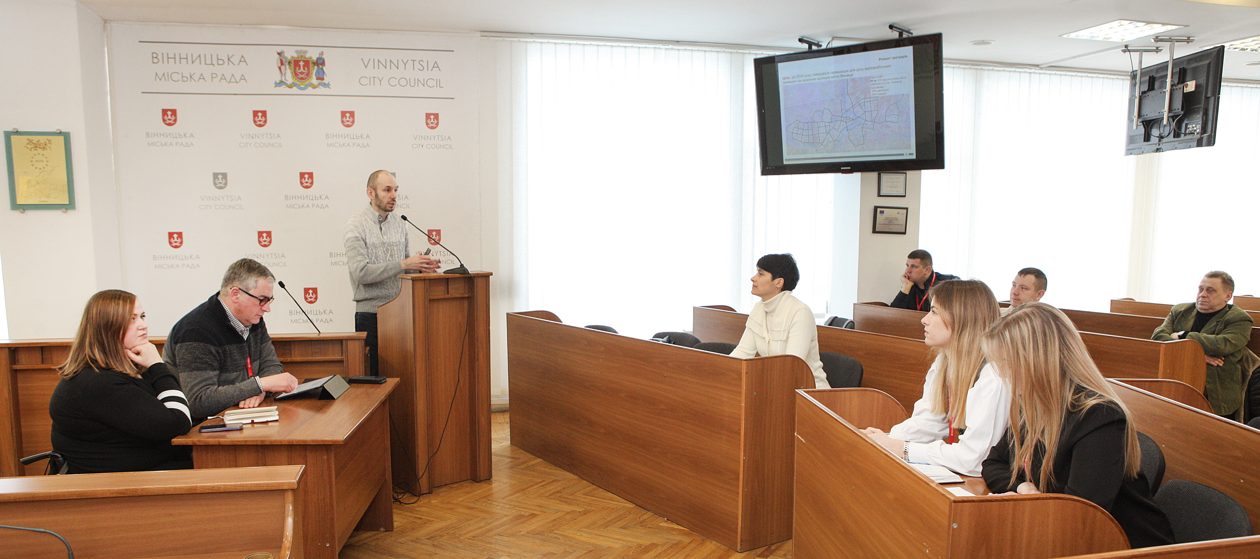 Головний експерт з просторового планування комунального підприємства «Агенція просторового розвитку» Максим Кравчук детально розповів присутнім про флагманський проєкт «Безбар’єрні маршрути», а також про Альбом стандартних рішень для тротуарів та зупинок громадського транспорту, який узагальнює досвід Вінниці в контексті розвитку безбар’єрного середовища на вулицях міста.