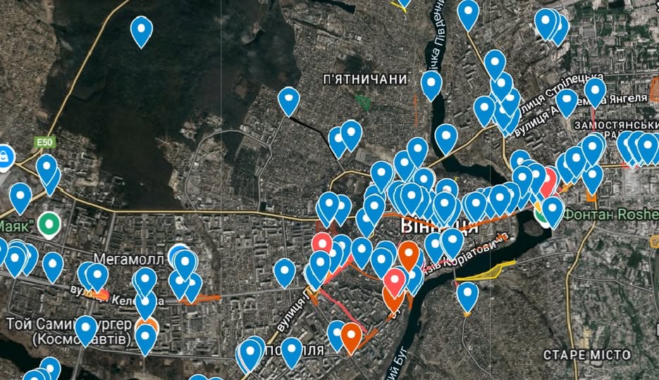 Чим більше позначок, тим чіткішим є розуміння, які місця особливо турбують вінничан і де варто діяти першочергово: