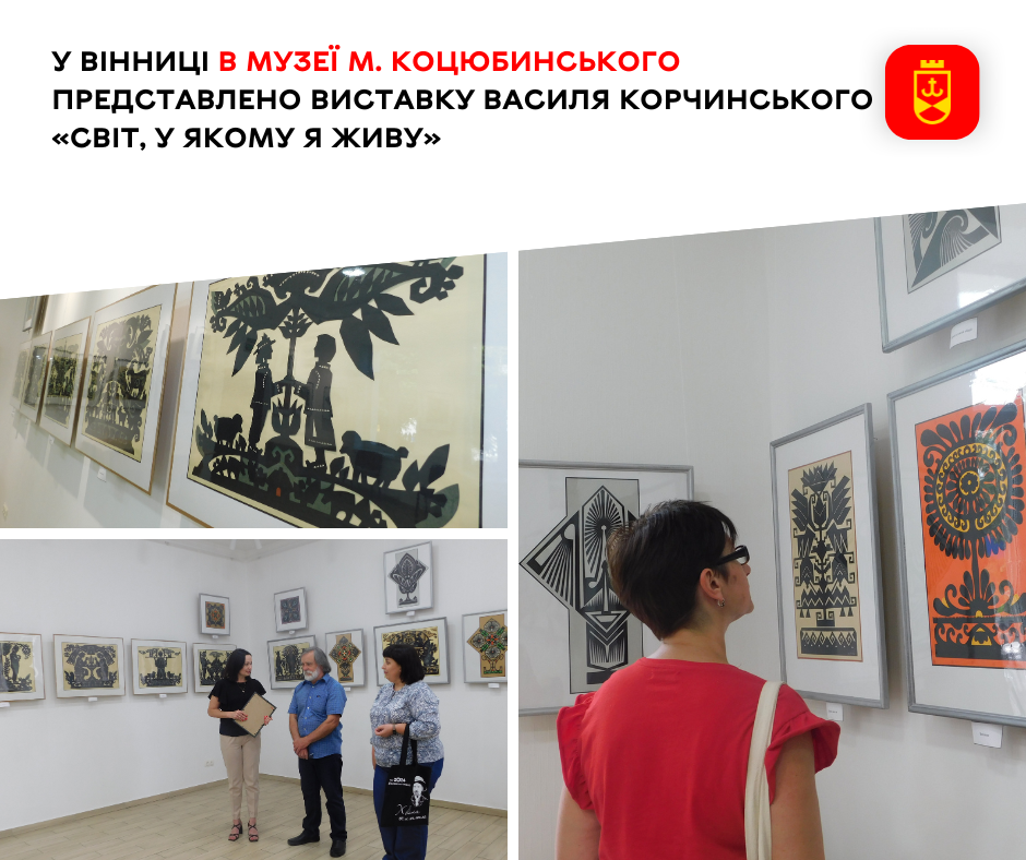 Як зазначається на сайті Вінницької міської ради, наше місто вкотре стало майданчиком для зустрічі з глибоким і самобутнім мистецтвом. У виставковій залі літературно-меморіального музею М. М. Коцюбинського відкрили персональну експозицію українського художника, графіка, майстра витинанки Василя Корчинського під символічною назвою «Світ, у якому я живу».