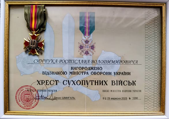 У повідомленні йдеться, що військовослужбовця 26-ї артилерійської бригади Ростислава Синчука, жителя села Кропивна Уланівської територіальної громади, відзначили державними нагородами: